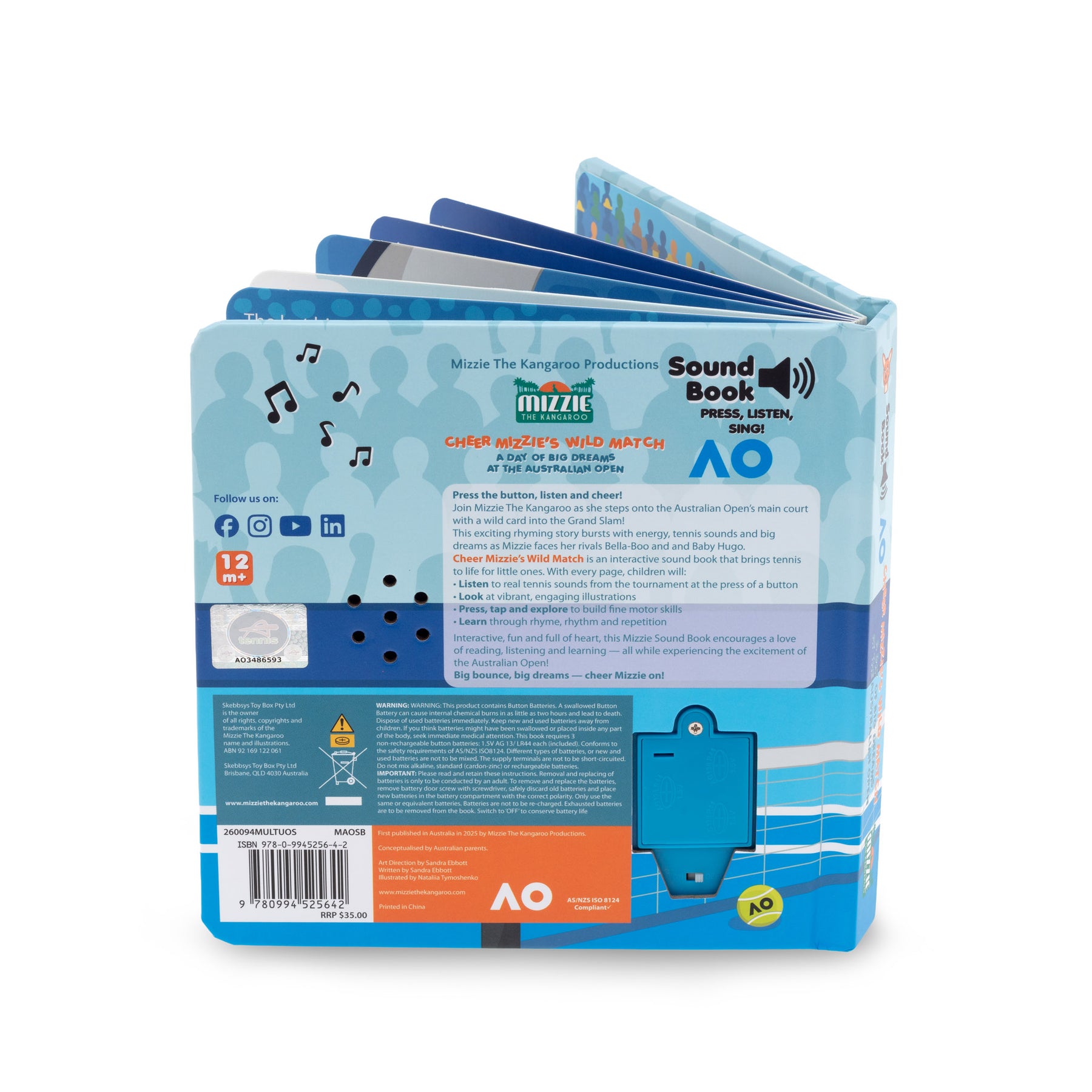 Interactive, fun and full of heart, this Mizzie Sound Book encourages a love of reading, listening and learning — all while experiencing the excitement of the Australian Open!