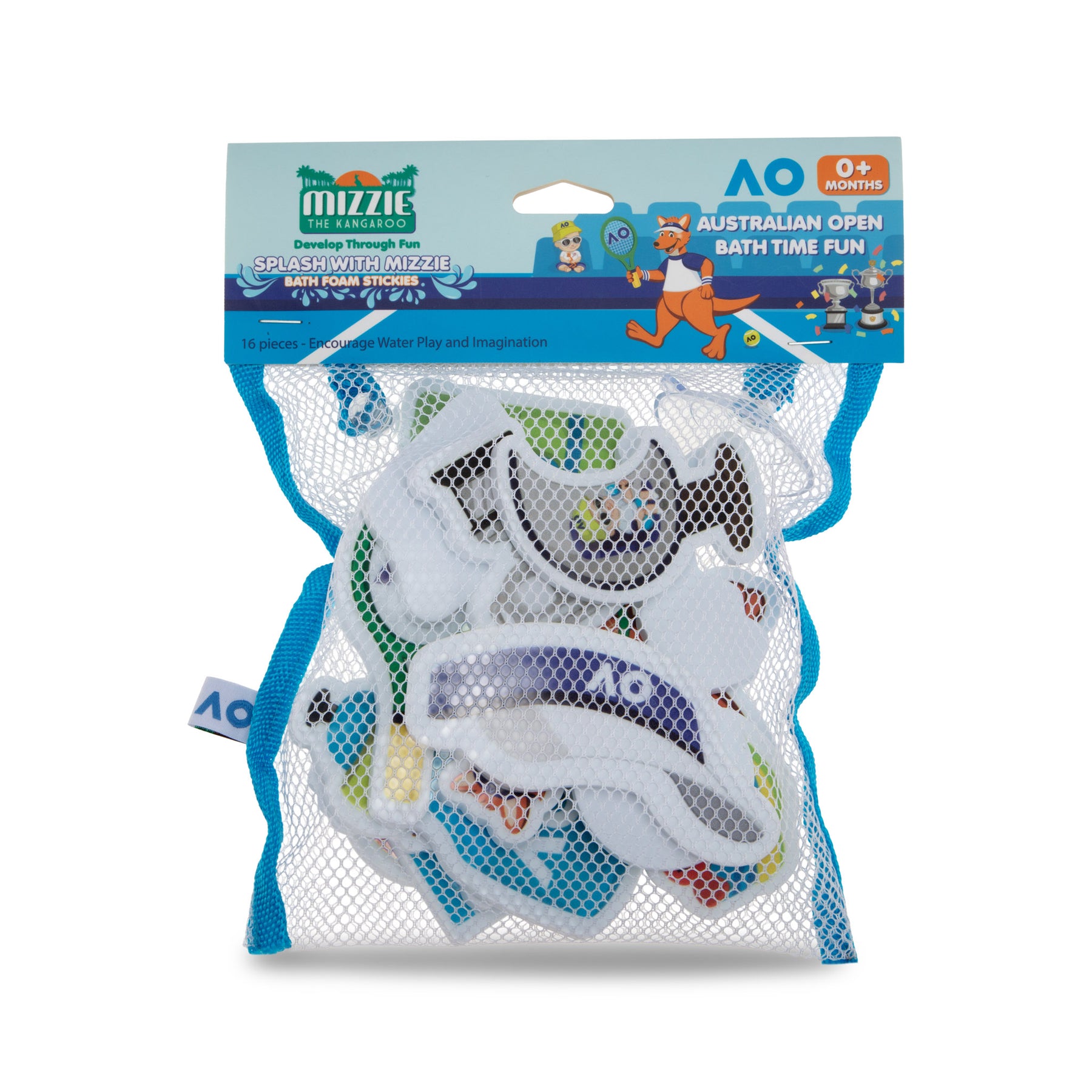 The Mizzie x Australian Open Bath Time Fun 'Splash with Mizzie - Bath Foam Stickies' encourage water play and imagination for the littlest champions.