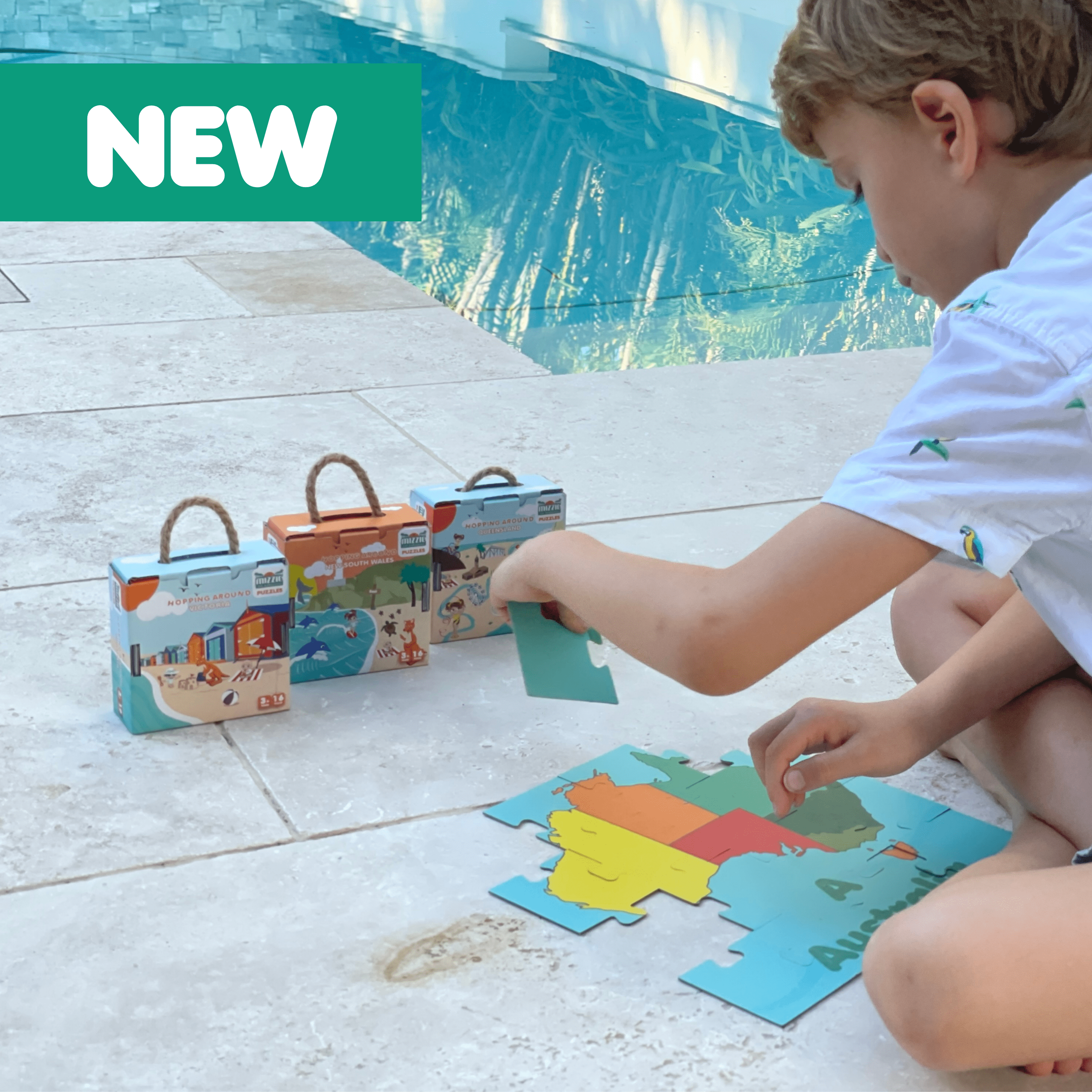 The Mizzie Collectible Puzzles Gift Set contains all 3 of our beautiful Mizzie Collectible Puzzles range: Hopping Around Victoria, Hopping Around Queensland, and Hopping Around New South Wales.